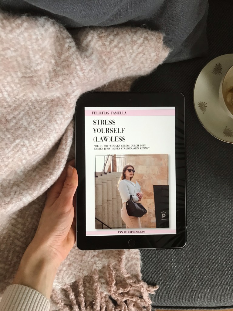 In Ihrem E-Book “Stress yourself (law)less” plaudert die Rechtsreferendarin Felicitas aus dem Nähkästchen und erklärt, wie Stress und Ängste im Studium und der Examensvorbereitung verringert werden können.